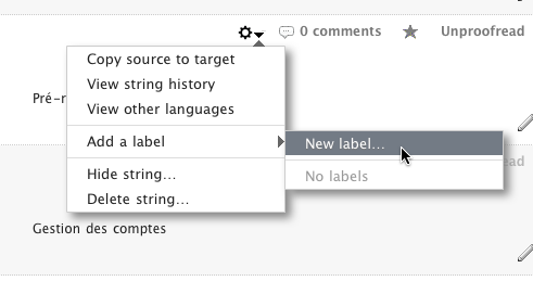 Many Web Translate It users have been requesting the ability to assign priorities to strings (translate these ones first), or assign jobs to people, or flag a string as typo’d. Labels will allow you to do all that.