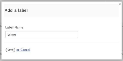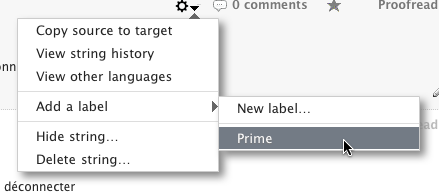 A modal window will appear and let you type the name of your label. For the sake of this example, let’s name it “prime”. “Prime” strings will be the strings I want my translators to translate first.
